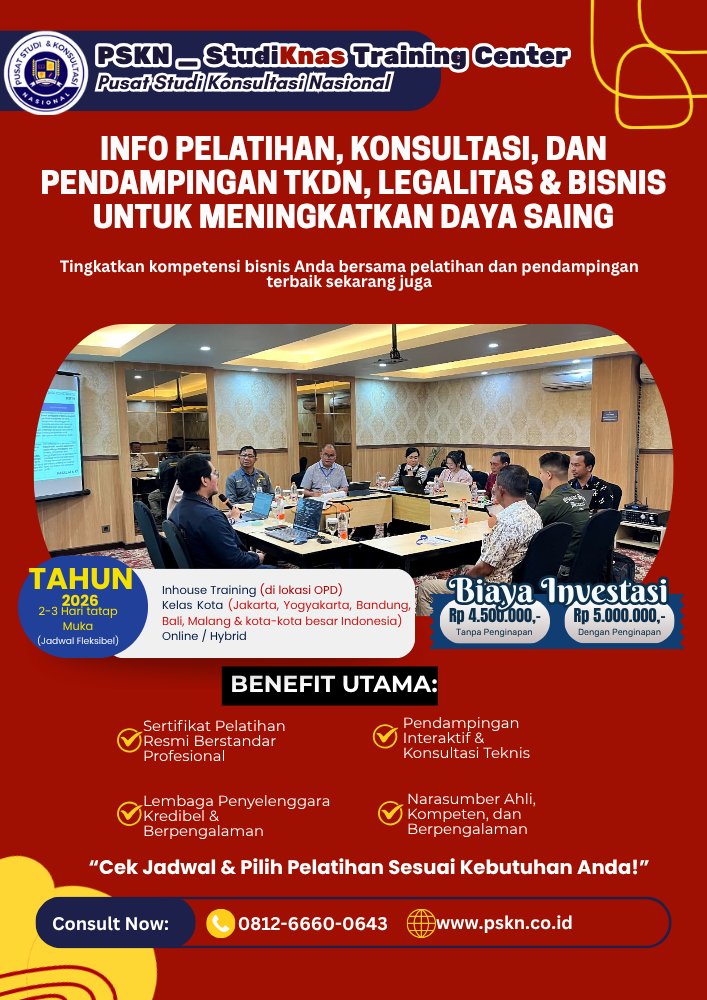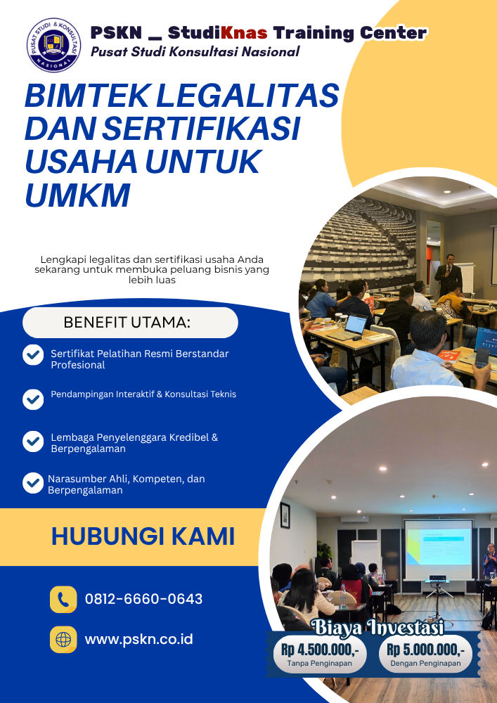 Usaha Mikro, Kecil, dan Menengah (UMKM) memiliki peran penting dalam perekonomian Indonesia. Namun, banyak UMKM yang belum memiliki legalitas dan sertifikasi usaha yang memadai. Padahal, kedua aspek ini sangat penting untuk meningkatkan kepercayaan pasar, memperluas akses pembiayaan, dan membuka peluang kerja sama bisnis. Melalui bimtek legalitas dan sertifikasi usaha, pelaku UMKM dapat memahami proses perizinan, jenis sertifikasi, serta strategi pengembangan usaha yang sesuai dengan regulasi. Untuk memahami layanan pelatihan, konsultasi, dan pendampingan secara menyeluruh, baca juga:👉 Info Pelatihan, Konsultasi, dan Pendampingan TKDN, Legalitas & Bis...