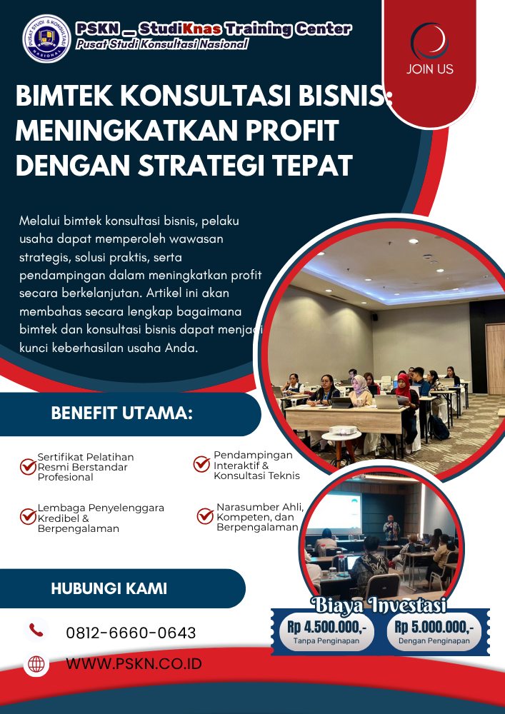 Dalam dunia bisnis yang kompetitif, meningkatkan profit bukan hanya soal meningkatkan penjualan, tetapi juga tentang strategi yang tepat, efisiensi operasional, dan pengambilan keputusan yang berbasis data. Banyak pelaku usaha, baik UMKM maupun perusahaan besar, menghadapi tantangan dalam mengoptimalkan keuntungan mereka. Melalui bimtek konsultasi bisnis, pelaku usaha dapat memperoleh wawasan strategis, solusi praktis, serta pendampingan dalam meningkatkan profit secara berkelanjutan. Artikel ini akan membahas secara lengkap bagaimana bimtek dan konsultasi bisnis dapat menjadi kunci keberhasilan usaha Anda. Untuk memahami pendekatan menyeluruh terkait pelatihan, konsultasi, dan pendampingan, baca juga: