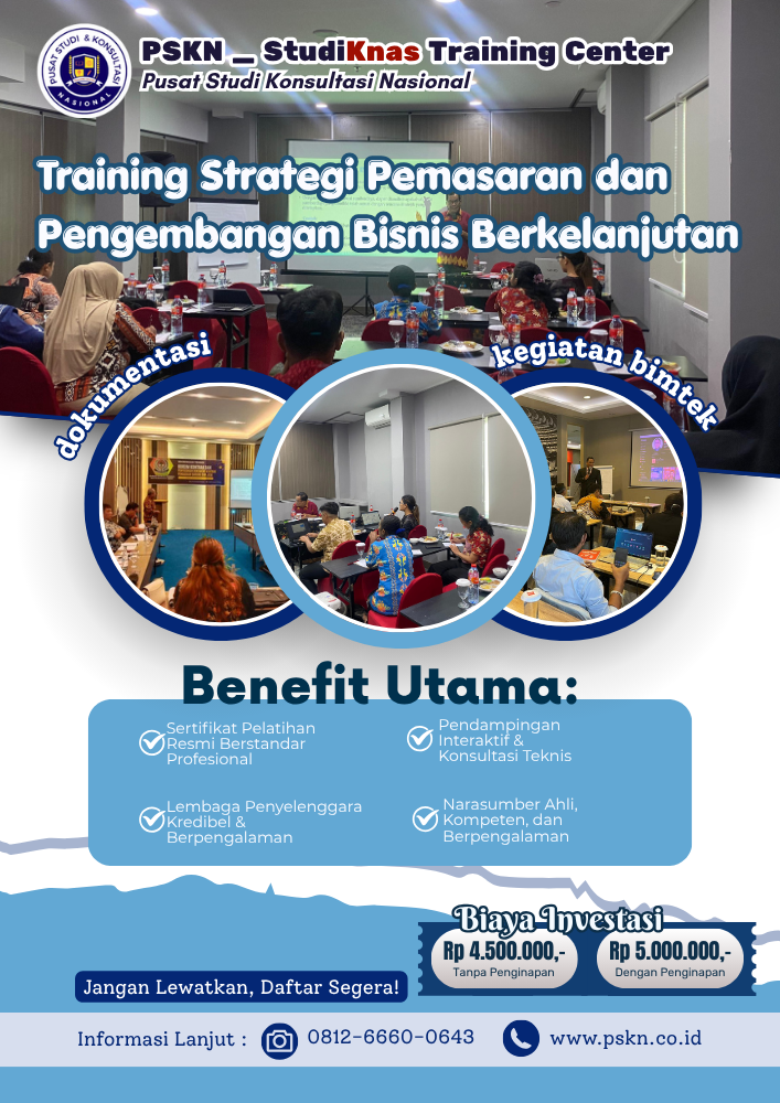 Dalam dunia bisnis yang terus berkembang, perusahaan tidak hanya dituntut untuk meningkatkan penjualan, tetapi juga memastikan pertumbuhan yang berkelanjutan. Strategi pemasaran yang tepat dan pengembangan bisnis yang terarah menjadi kunci utama dalam mencapai tujuan tersebut. Melalui training strategi pemasaran dan pengembangan bisnis berkelanjutan, pelaku usaha dapat memahami bagaimana membangun brand yang kuat, menjangkau pasar yang lebih luas, serta menciptakan pertumbuhan yang stabil dan berkelanjutan. Untuk memahami pendekatan pelatihan, konsultasi, dan pendampingan secara menyeluruh, baca juga:👉 Info Pelatihan, Konsultasi, dan Pendampingan TKDN, Le...