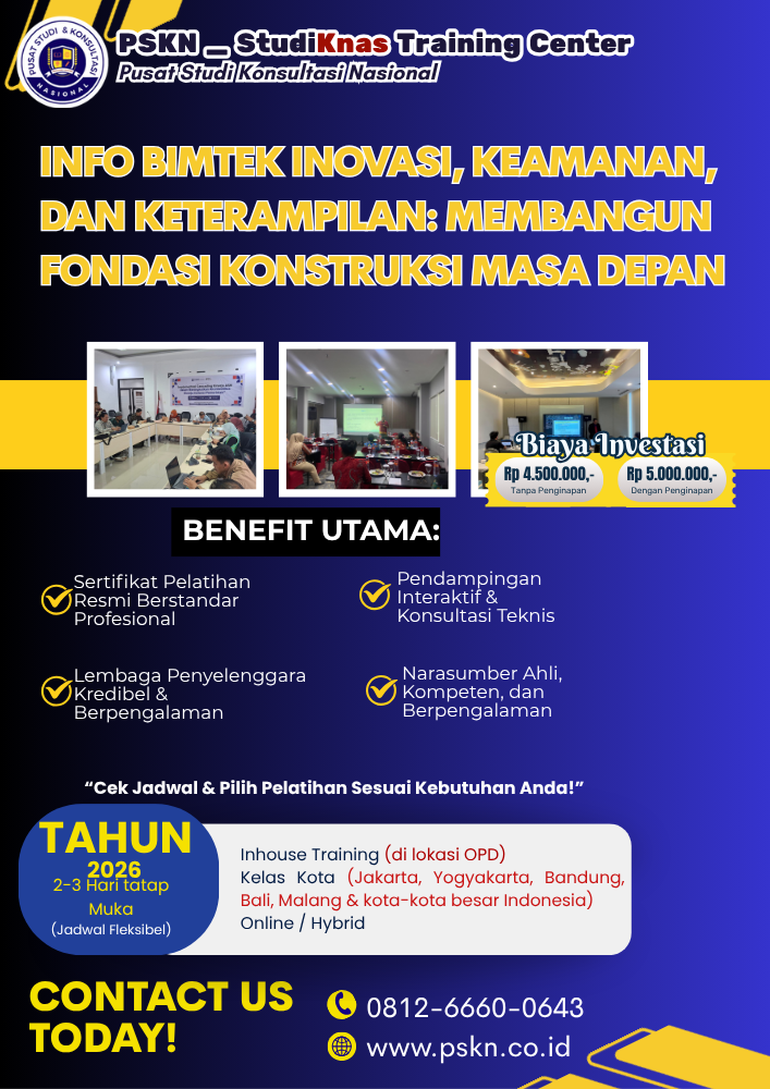 Bimtek dalam inovasi, keamanan, dan keterampilan adalah investasi penting untuk menciptakan fondasi konstruksi yang kuat dan siap menghadapi tantangan masa depan. Dengan mengedepankan pelatihan yang berbasis teknologi terbaru, standar keselamatan yang ketat, dan peningkatan keterampilan, industri konstruksi Indonesia akan lebih siap untuk berkompetisi di pasar global.