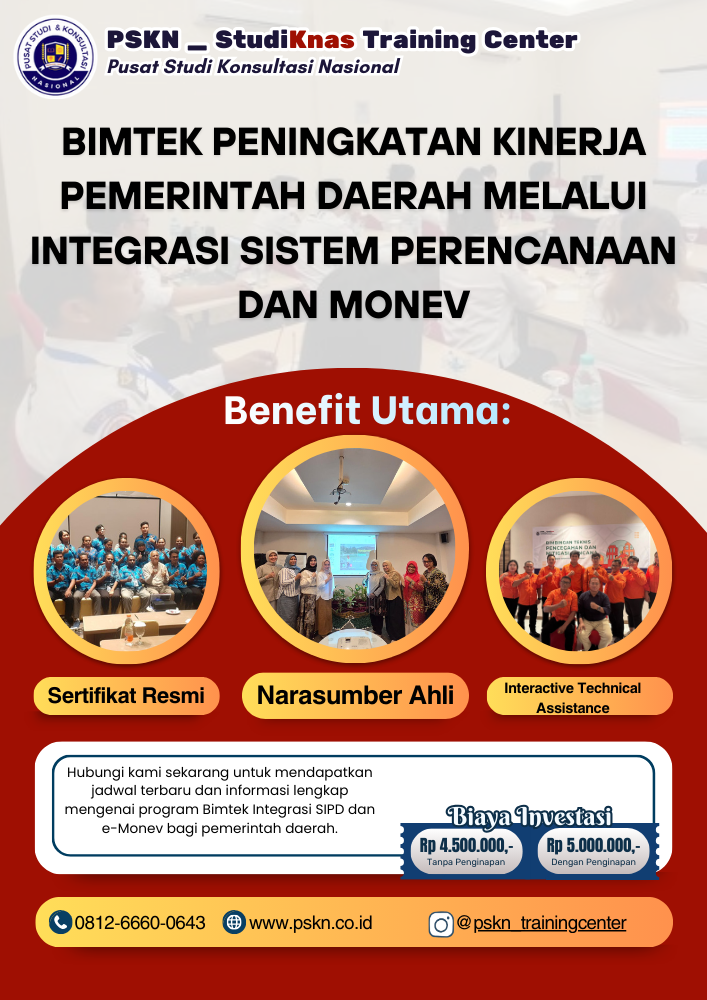 Tingkatkan kompetensi aparatur pemerintah daerah melalui Training Akselerasi Integrasi SIPD, e-Monev, dan Kinerja Berbasis Data sekarang juga.